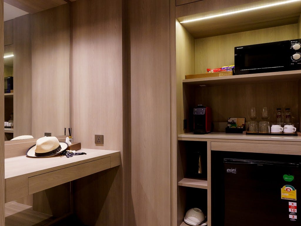 This spacious 58 sqm suite features a living room, 1 separate bedroom and 1 bathroom with jacuzzi bath, walking closet, and free toiletries. Boasting a terrace with garden views, working table, dining table, microwave, coffee maker machine and free minibar. This suite also features air conditioning and a flat-screen TV with satellite channels. The unit has 1 king size bed.